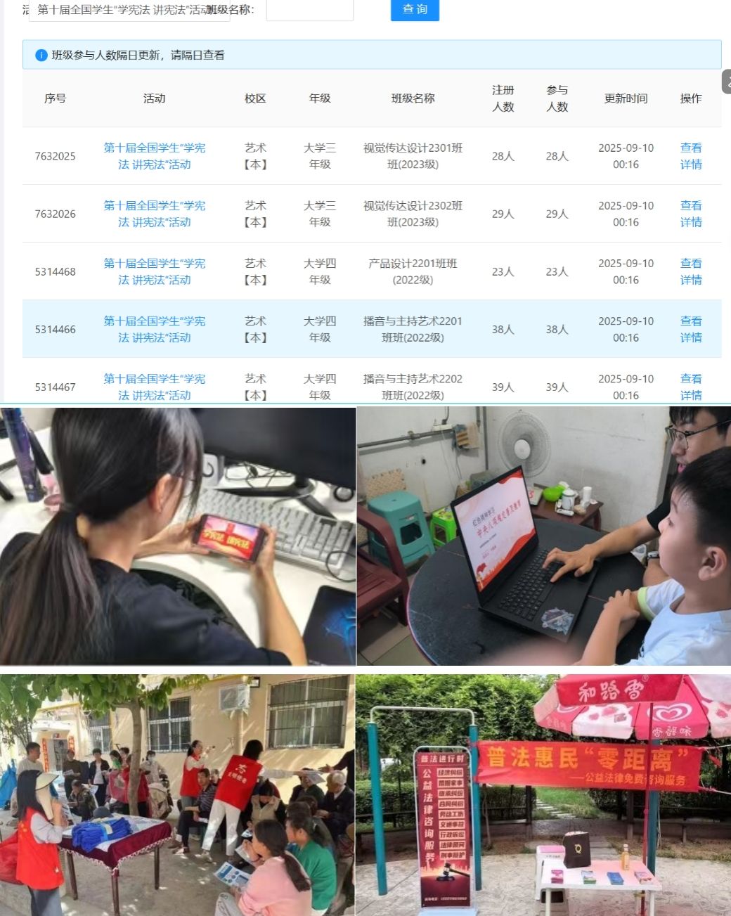 积极响应教育部第十届全国学生“学宪法 讲宪法”活动号召,全校学生100%参加“宪法卫士”在线学习与测评。学生们深入学习习近平法治思想,理解宪法与国家制度、公民权利义务的关系,法治意识显著增强。健康学院学生党员主动在家乡社区设立“宪法咨询角”,解答物业纠纷、遗产分配等实际问题,发放宪法手册300余份,让居民切身感受宪法保障。活动使学生深刻认识到,学习运用宪法对树立法治信仰、明确权责、培养法治思维、指引人生方向意义重大。