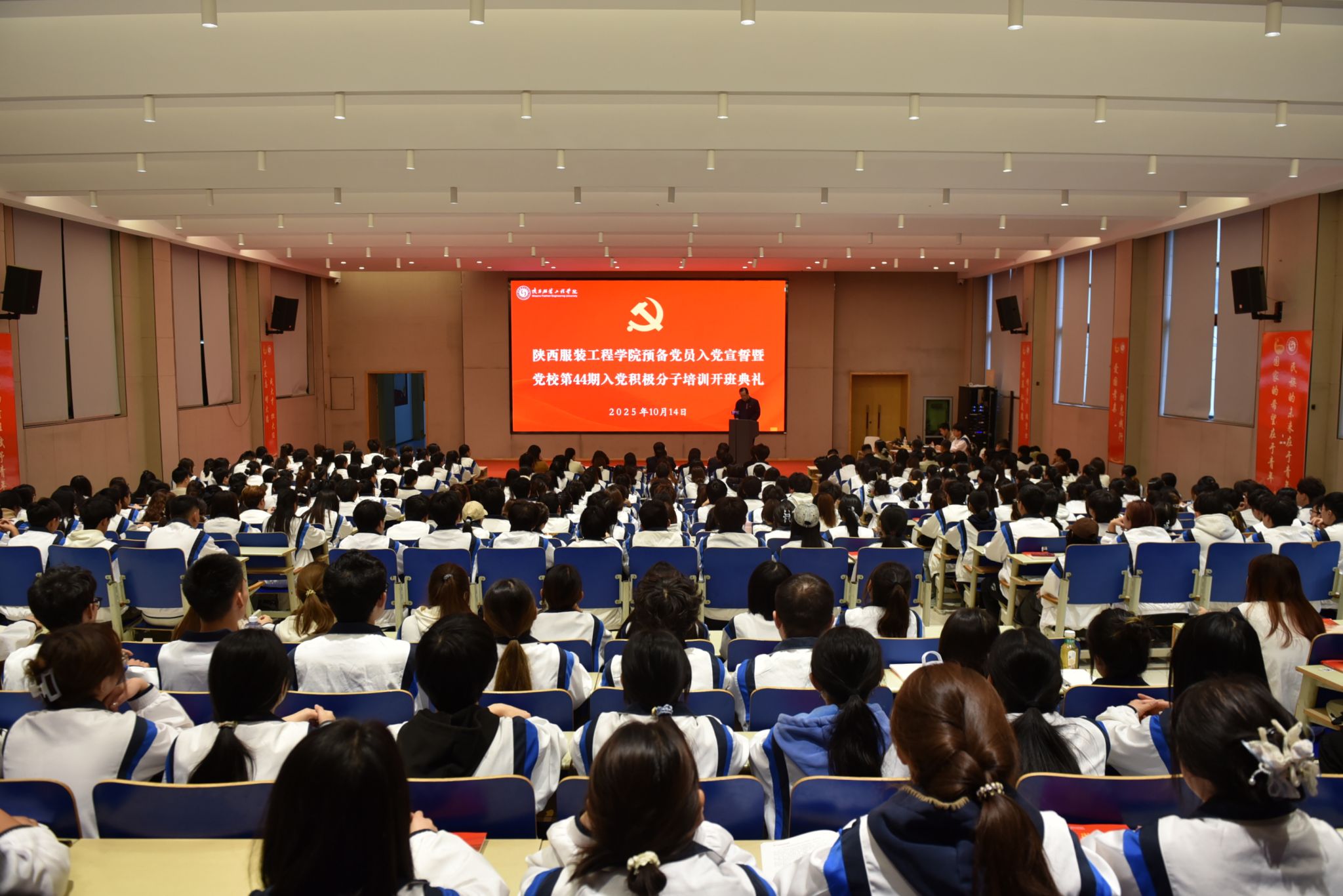 陕服新闻网讯(刘萍)10月14日下午,学校在E1-4报告厅举行预备党员入党宣誓暨党校第44期入党积极分子培训开班典礼。校党委书记王岗出席并讲话,校党委副书记、纪委书记、党校校长刘继兵主持典礼。