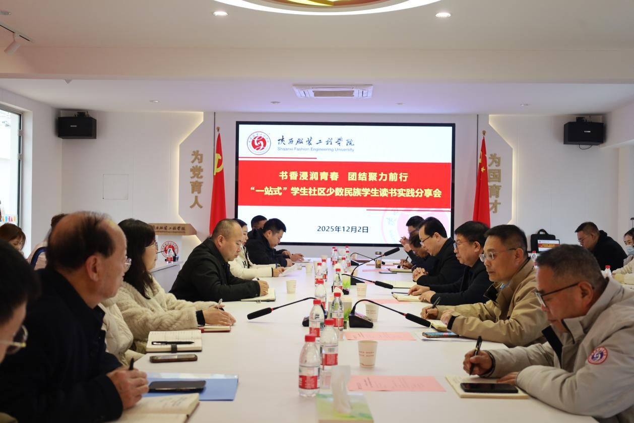 陕服新闻网讯(张维峰)为深化民族团结进步教育,铸牢中华民族共同体意识,营造书香校园浓厚氛围,12月2日下午,“书香浸润青春,团结聚力前行”——“一站式”学生社区少数民族学生读书实践分享会在学校行政中心326会议室举行。校党委书记王岗、党委副书记刘继兵、校长助理罗文谦出席活动。学工部、宣传部、校团委、图书馆负责人,各学院党委副书记,辅导员及少数民族学生代表50余人参加。新疆派驻陕西高校工作的杨超老师列席会议。
