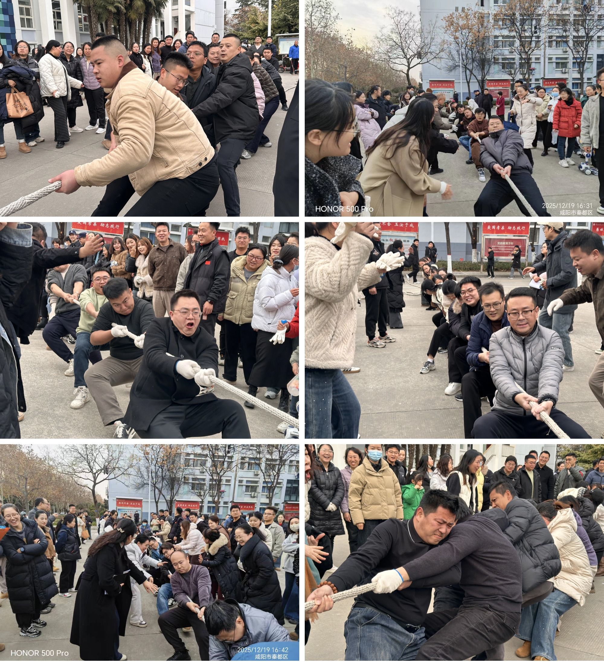 陕服新闻网讯(李文斌)12月19日下午,2025年学校教职工拔河比赛在阳光广场举行。代表各二级学院、教学单位、机关各部门的10支教职工代表队参加活动。