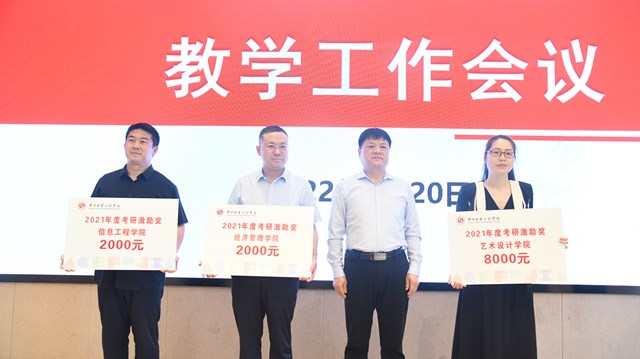 会议首先对近期我校教师取得的省级教学奖项进行了表彰,吕明董事长为获得陕西第四届本科高校课堂教学创新大赛三等奖的祖灵珊老师颁奖、姜寿山校长为陕西高校思政课教师“大练兵”省级展示中获得“思政课程教学能手”的吴文娟老师颁奖、吕超副董事长为2021年度考研先进单位进行了颁奖。