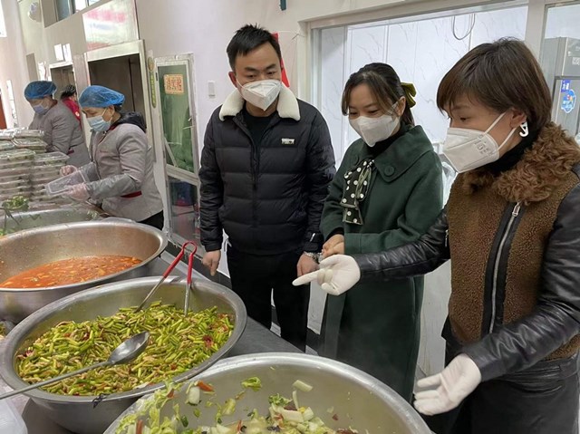 陕西服装工程学院董事长吕明博士亲临配餐现场,检查物资储备,查看工作流程,询问菜品搭配、送餐环节的安全措施等,要求全力以赴,精细化做好配餐送餐服务工作,确保被隔离人员供餐安全。