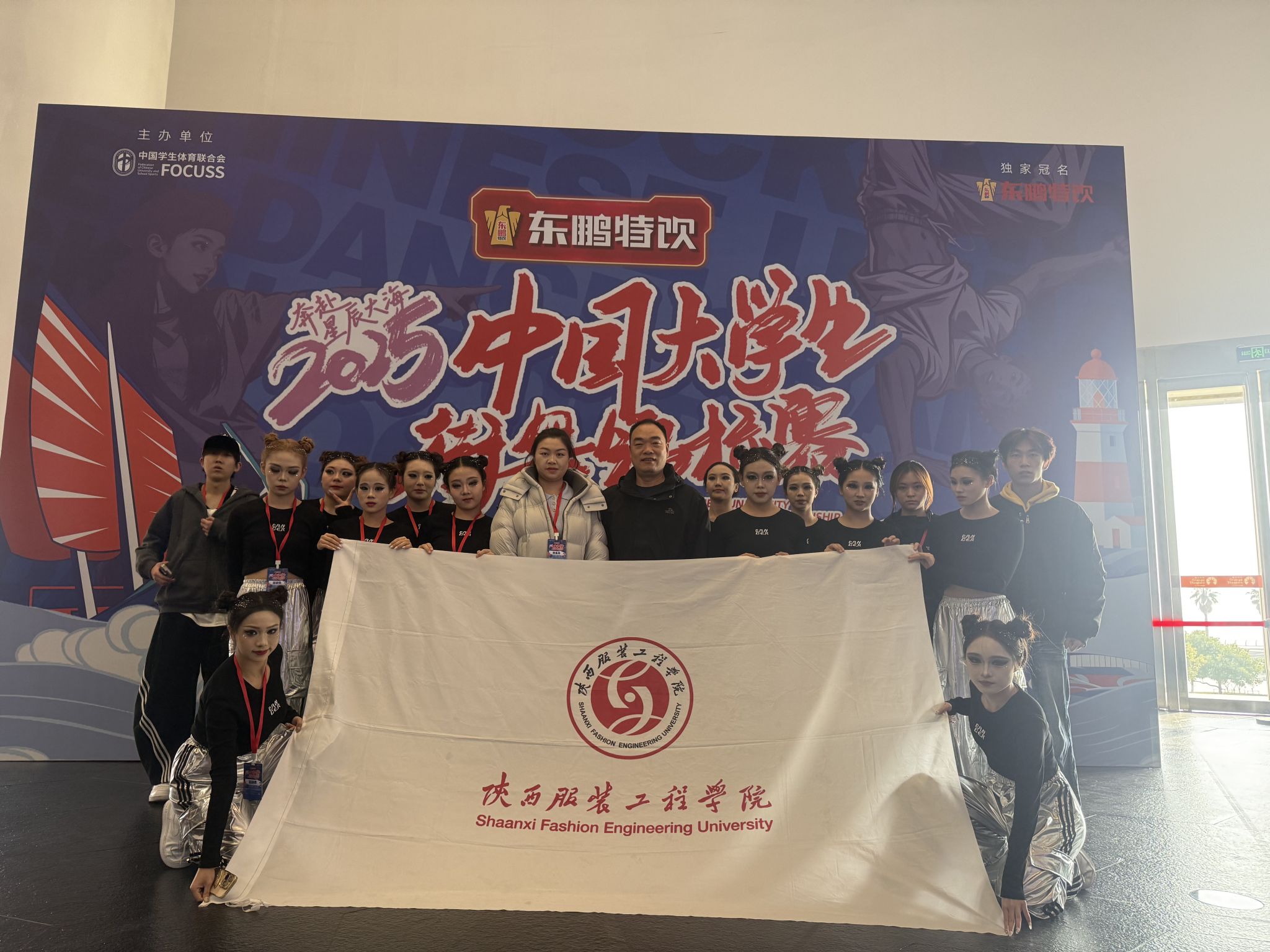 陕服新闻网讯(赵倩)近日,2025中国大学生街舞锦标赛在浙江舟山成功举办。来自北京大学、厦门大学、浙江大学、新疆大学、北京体育大学、广州体育学院等70余所高校和专业类院校的1200多名大学生参加本次比赛。我校代表队在体育部倪德财老师、赵倩老师的悉心指导和带领下,凭借扎实的功底和出色的表现,获甲A组推广套路-Street jazz(大集体)第四名、推广套路Breaking(小集体)第八名。