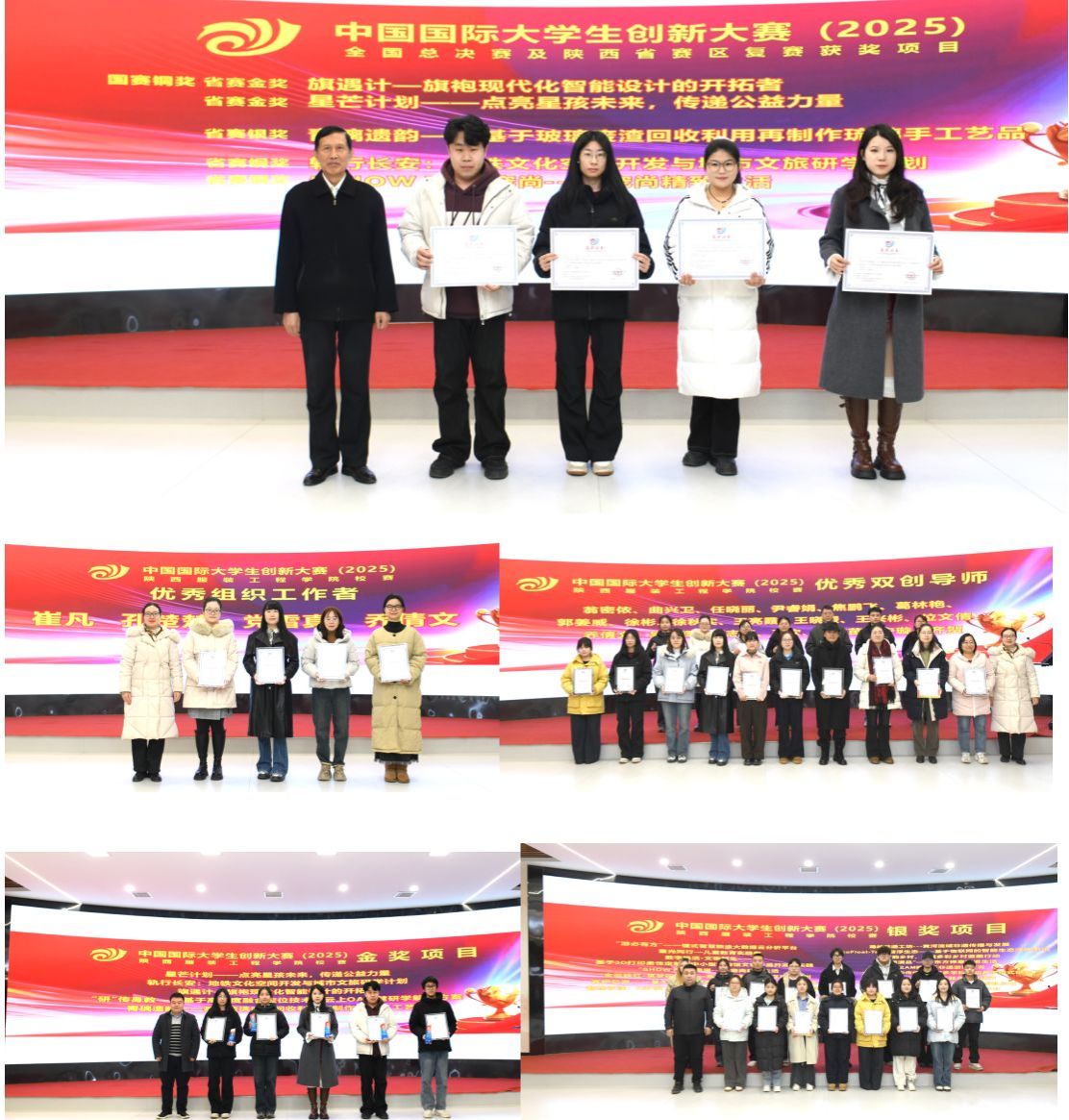 会上,双创学院负责人对2025年大赛工作进行了全面总结,并宣读《关于公布陕西服装工程学院大学生创新大赛(2025)获奖结果的通知》,肯定了师生在赛事中取得的突破性成绩。