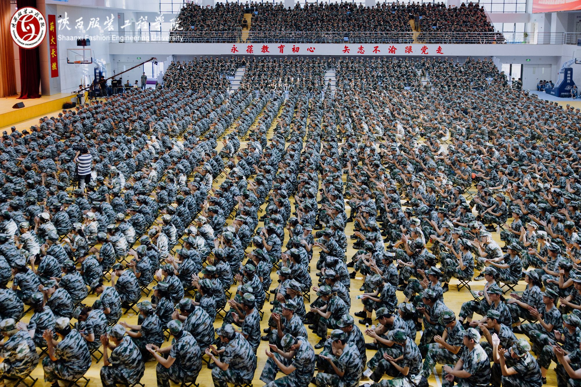 陕服新闻网讯(李文斌)9月1日下午,镐京集团所属陕西服装工程学院、陕西科技大学镐京学院师生齐聚陕服体育馆,开启2025级同学步入大学殿堂的“开学第一课”,开学第一课以“弘扬伟大抗战精神,担负时代光荣使命”为主题,具有深远的意义。镐京集团董事长董事局主席、陕西服装工程学院董事长、陕西科技大学镐京学院董事长吕明,陕西服装工程学院校长姜寿山、陕西科技大学镐京学院校长刘子建,两校校级领导、各二级学院领导、各职能部门负责人,军训团全体教官,2025级全体新生参加。陕西服装工程学院党委书记王岗主持。