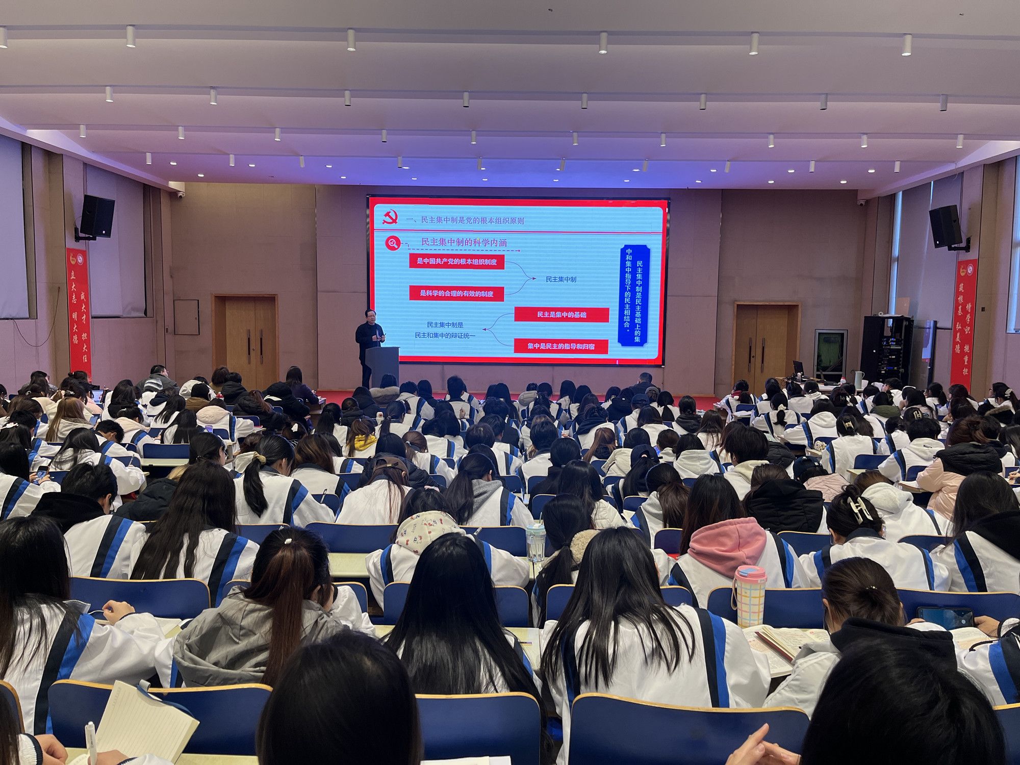 党委组织部部长伍建成作了党的二十届四中全会精神宣讲,重点讲解了党的二十届四中全会会议概况、重大意义、关于教育科技人才方面的精神,以及学习贯彻会议精神的要求。并以“熟悉入党程序,争取早日入党”为题,全面讲解了入党流程及注意事项。勉励同学们要掌握扎实的科学文化知识,全面提高自己的综合素质,做到德智体美劳全面发展;要时刻以党员的标准来要求自己,积极主动为学校和广大师生服务;要始终保持思想上和行动上的先进性,既要密切联系同学,关心同学,又要有强烈的责任感和奉献精神。
