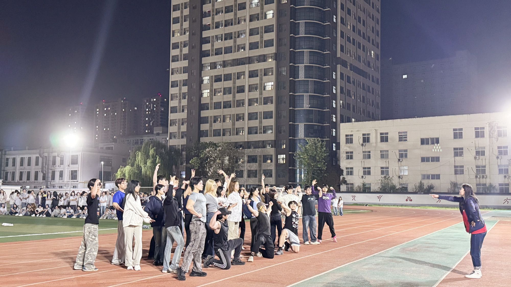 本次开幕式表演节目参与人数众多、规模宏大,排练难度高。面对时间紧、任务重的挑战,专项教研室全体教师排除一切困难,与参演学生并肩奋战在排练一线。夜幕降临,体育场灯光亮起,师生们依然在音乐伴奏下紧张有序地排练,热情不减、劲头不退。教师们还利用课余时间加强训练,抠好每个动作、抓好每个环节,力争在开幕式上呈现最佳效果。正是这份执着与坚守,让每一次排练都稳步推进,让表演节目日臻完善。